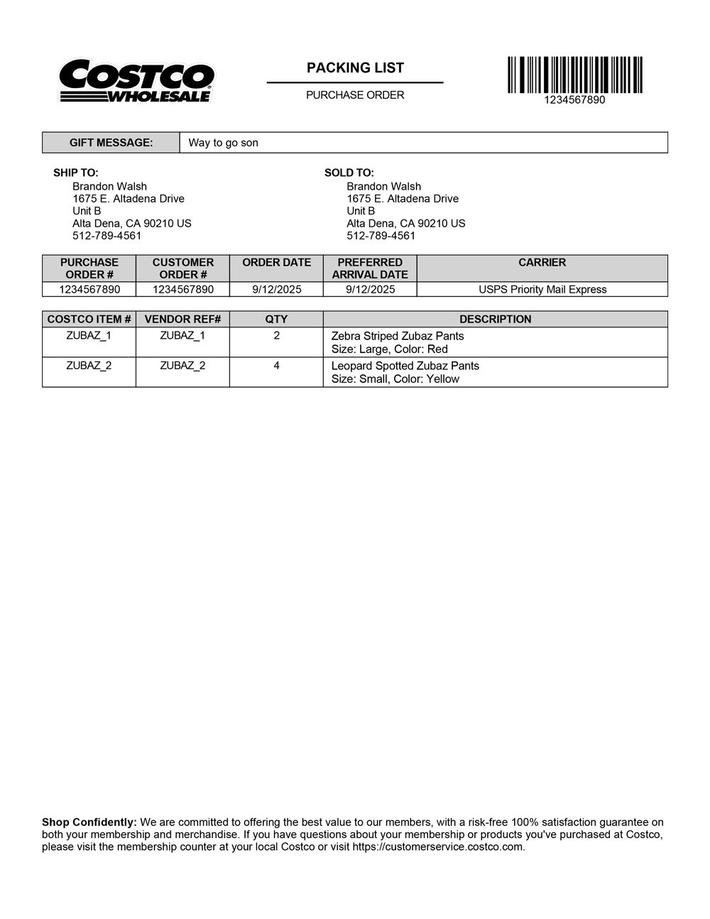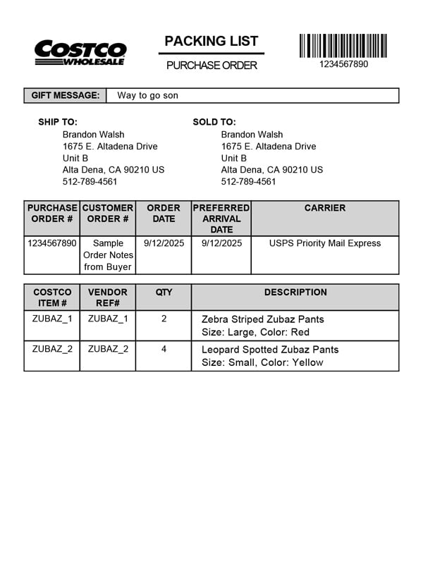 Use this custom Costco packing slip for your Shipstation.com store today!