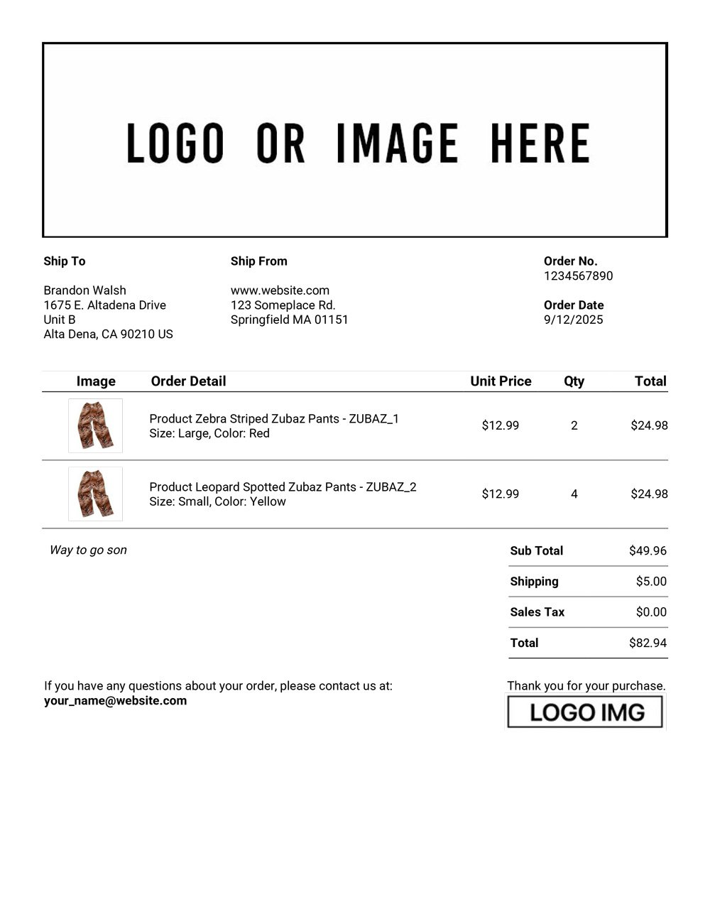 Use this custom shipstation packing slip for your Shipstation.com store today!