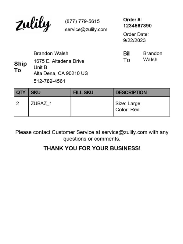 Zulily 4x6 and 8.5x11 Packing Slip Templates